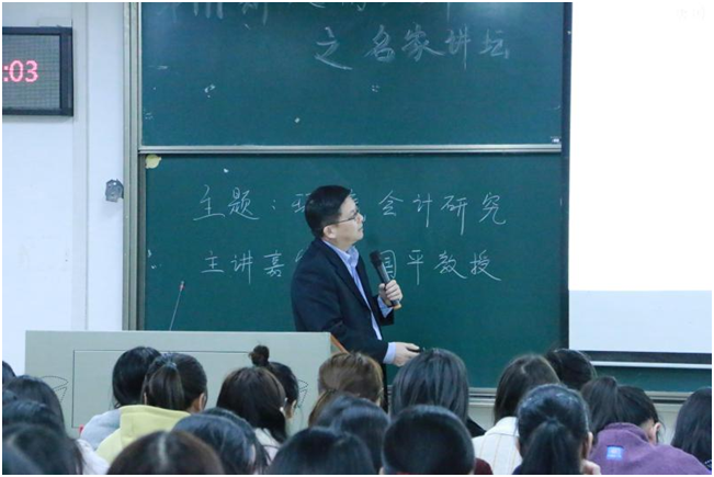 最后,唐国平教授以“企业环保投资”为例向大家讲解了论文选题及后续研究过程中的注意事项,对同学们日后的学术研究提出了实用的建议和指导。(文/杨柳燕 图/高欣黎)